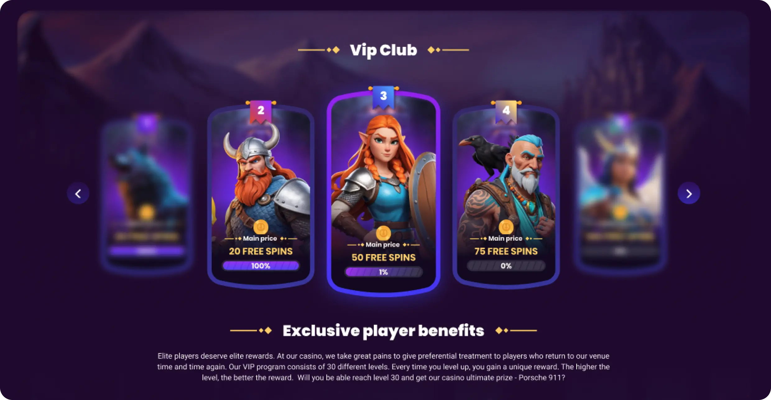 - Przejrzysty program VIP z 50 poziomami